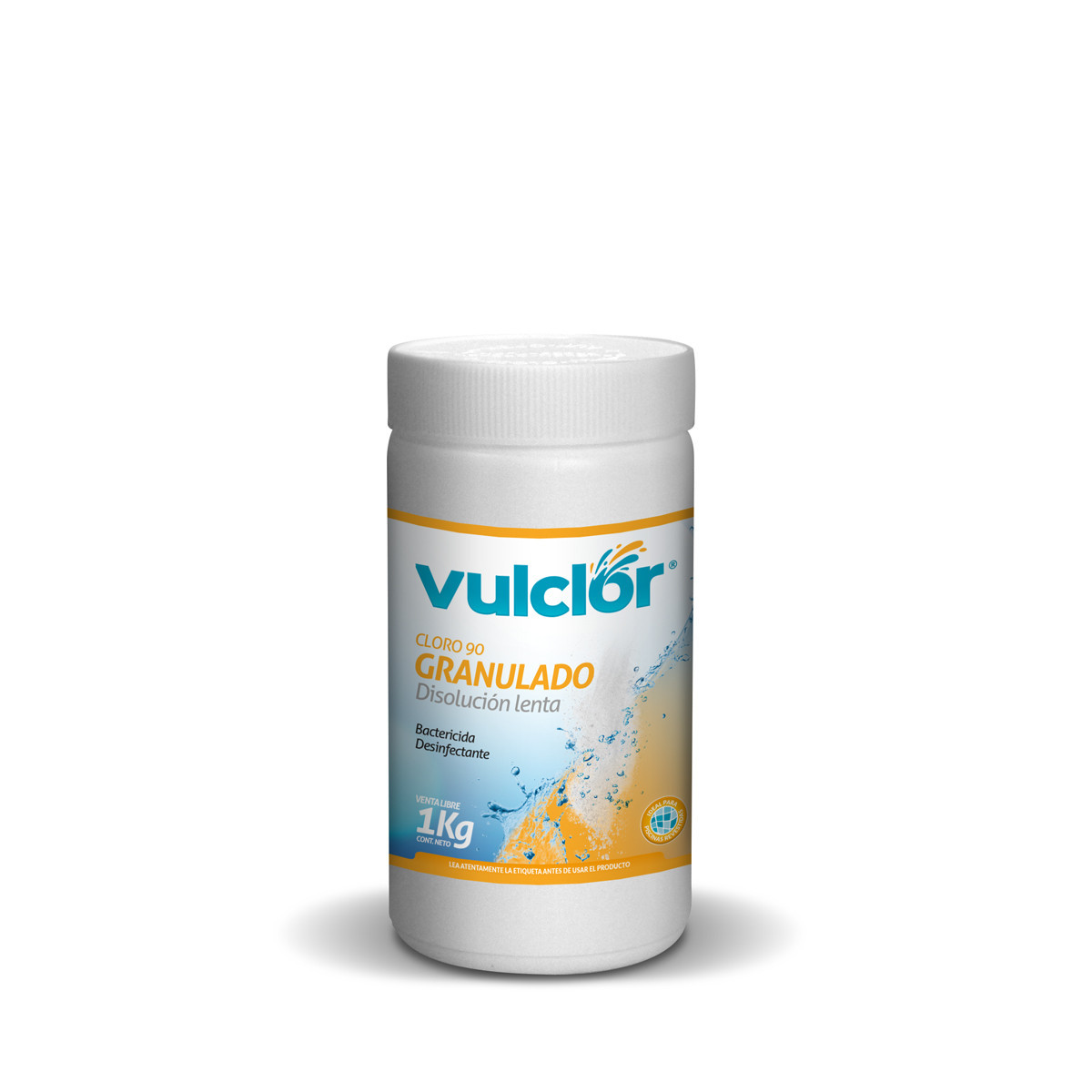 CLORO 90% VULCANO en tabletas para aguas de piscinas, eficaz bactericida al hidrolizarse, de alto poder desinfectante, de solución lenta, estabilizando ante la acción del sol y de alto poder residual.